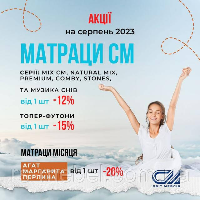 АКЦІЯ НА МАТРАЦИ02.08.2023повідомляємо Вам про подовження акційних пропозицій на матраци Світ меблів та Family Sleep до 31 серпня 2023 р. Інші новини06.11.2025Акція триваєз 28.10..2025р. по 11.11.2025р.17.09.2025ПРО ПОДОРОЖЧАННЯ