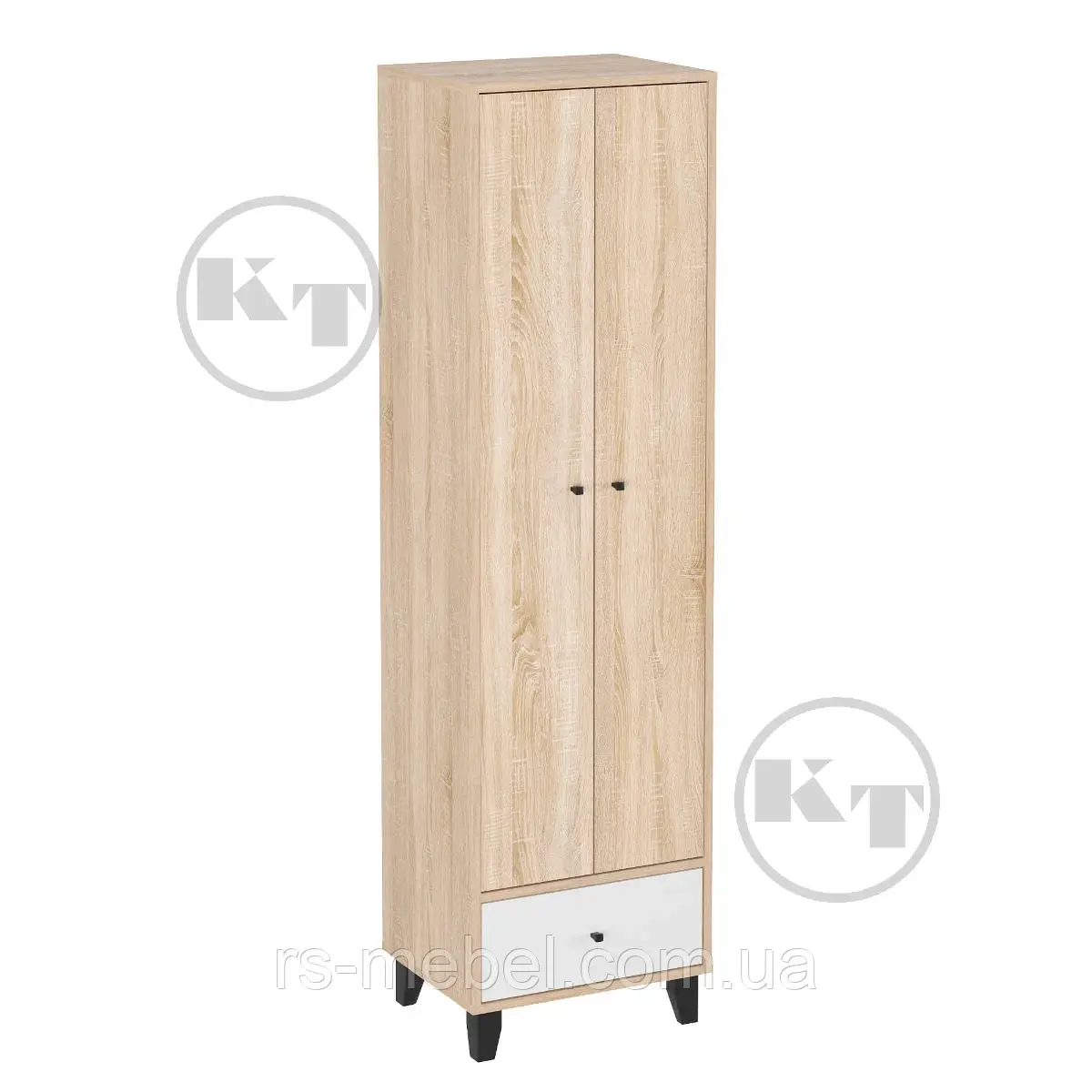 Матеріал: ламіноване ДСП, крайка ПВХ, висувна вішалка для одягу, ящик на роликових напрямних.