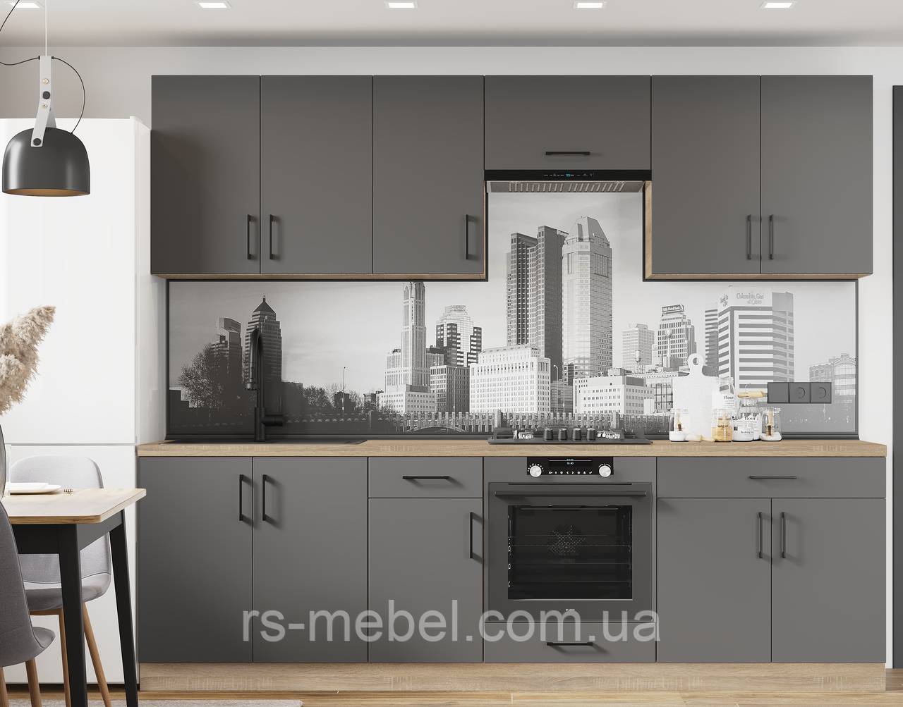 Кухня К-6 (2,6 метра) з фасадом у кольорі графіт, виробництва меблевої фабрики "Еверест".