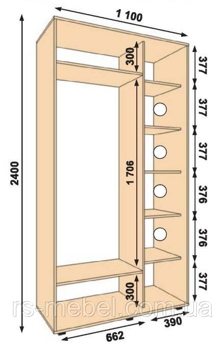 | Довжина шафи-купе | 1100 мм |