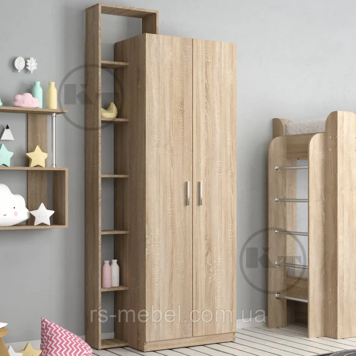 Матеріал: ламіноване ДСП, крайка ПВХ, штанга для одягу.